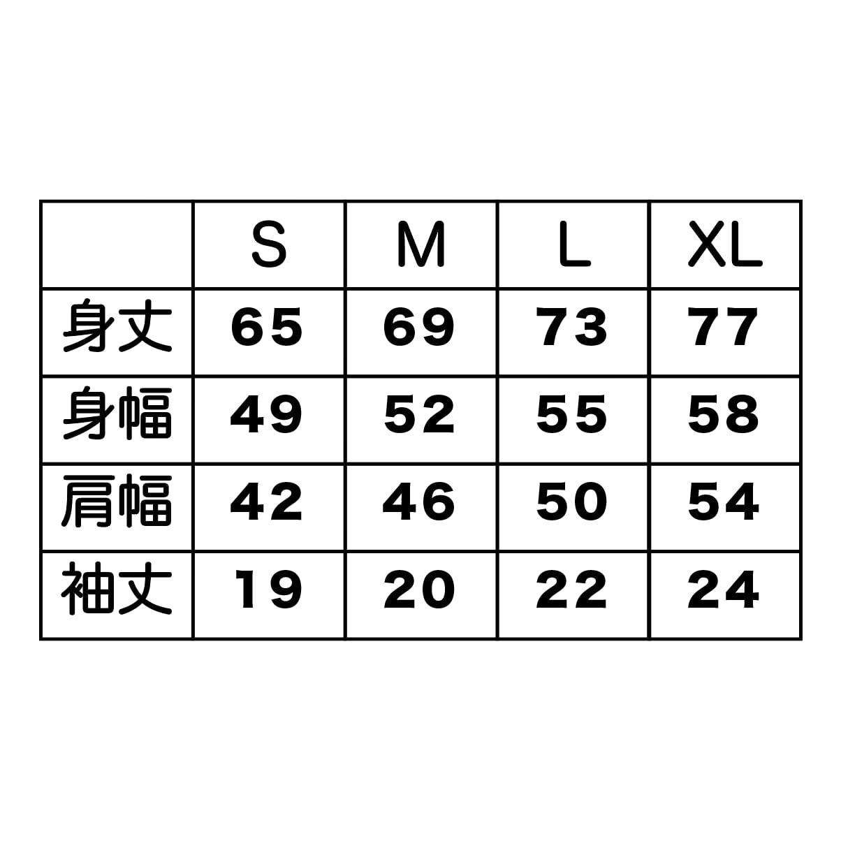 XL:身丈約 77cm / 身幅約 58cm / 袖丈約 24cm